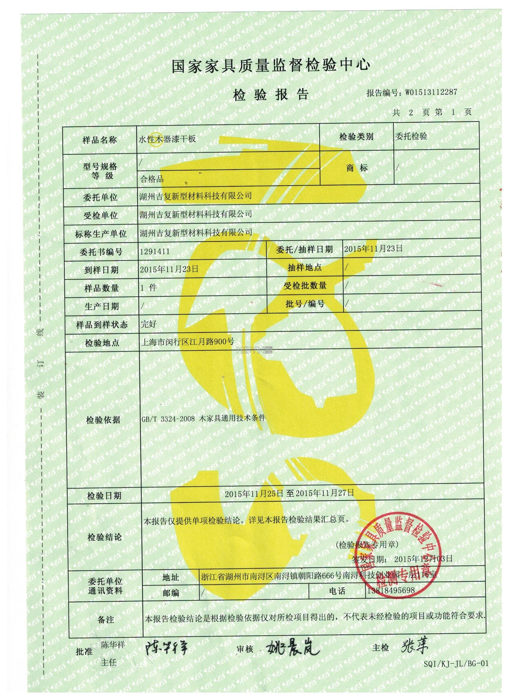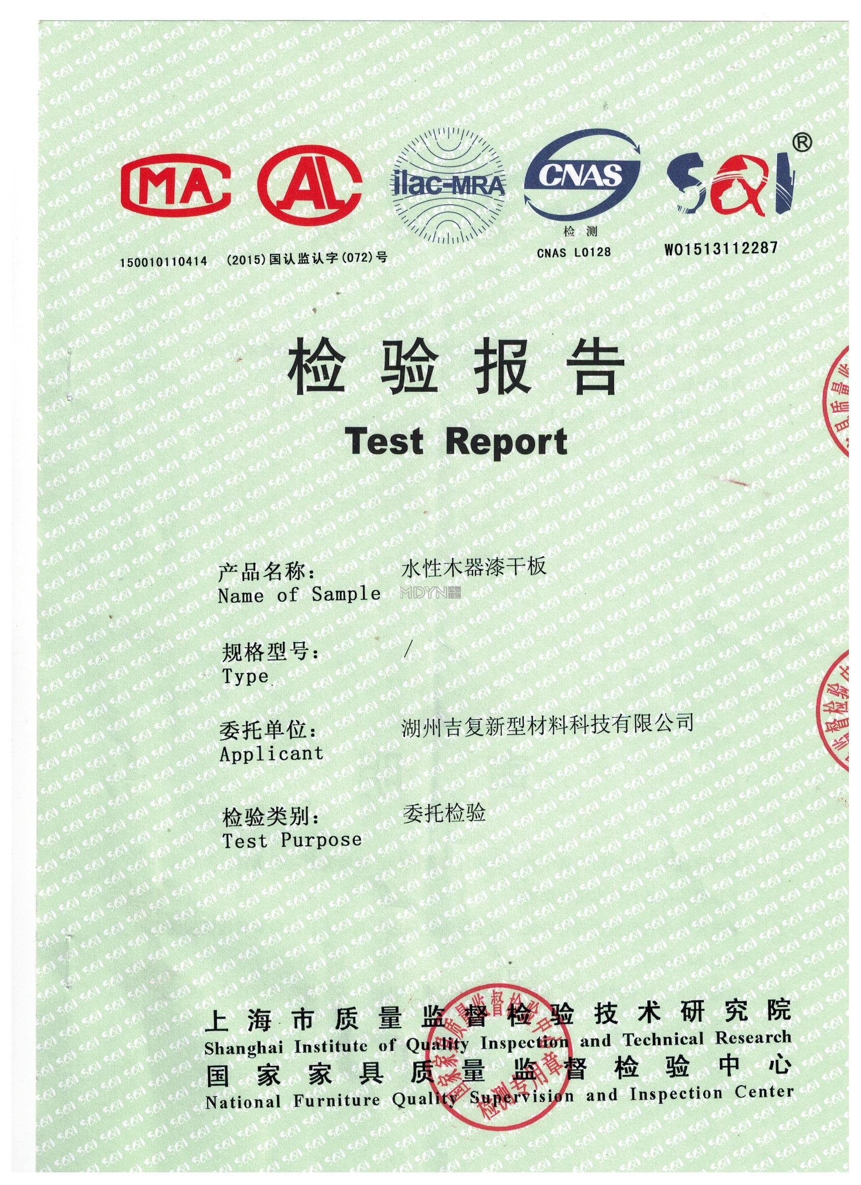 吉復水性漆檢測報告